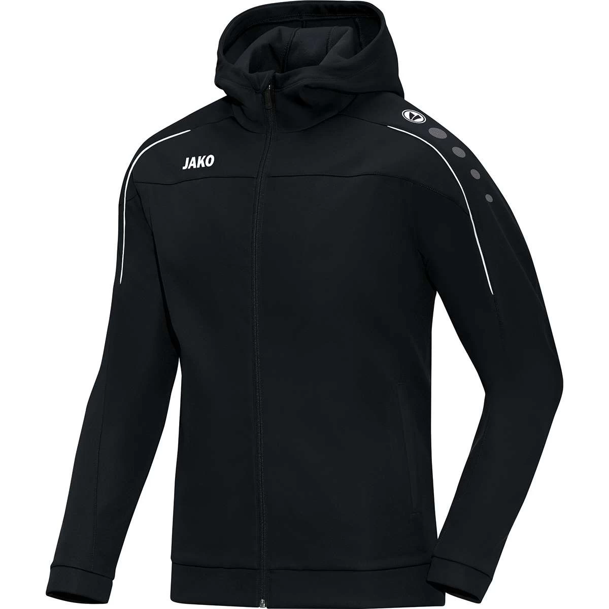 Lässige Auftritte mit Kapuze im klassischen Oberteil. Der Stil der Kapuzenjacke CLASSICO ist auf das Wesentliche reduziert. Einfarbig in Rot, Citro, Royal, Sportgrün, Schwarz, Marine, Lila, Maroon, Neonorange und Nightblue/Citro erhältlich, zeigt sie den Schriftzug JAKO und unsere Markensymbole. Die Innenseite aus Microfleece sowie die Zippergarage garantieren besonders hohen Tragekomfort. In den Seitentaschen lassen sich Alltagsgegenstände praktisch aufbewahren. Das Oberteil ist in den Größen 128 – 164, S – 4XL und im Damenschnitt von 34 – 48 verfügbar.